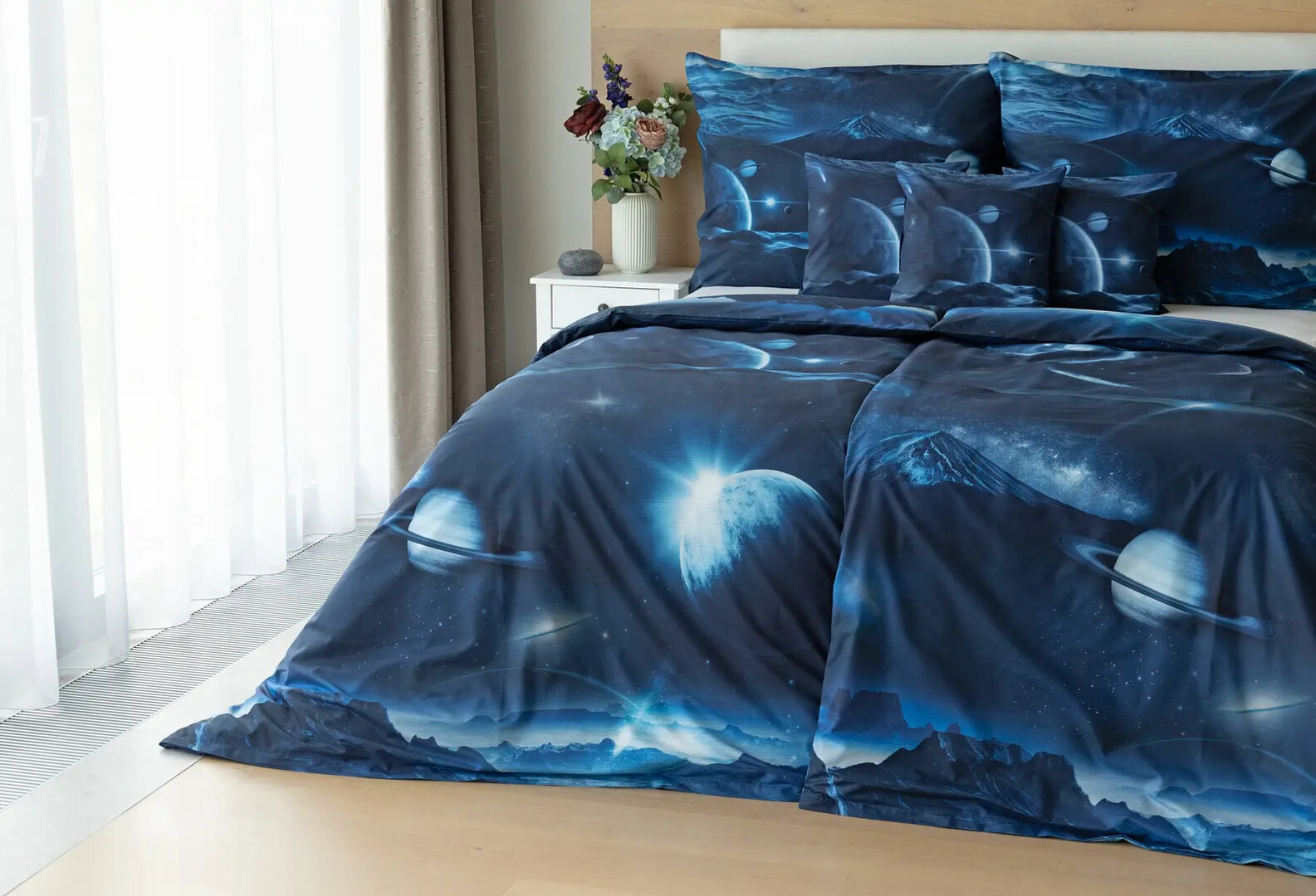 Díky nejmodernějšímu digitálním tisku vyniká vzor v precizním detailu. Přeneste se do vesmíru každou noc a nechte své sny volně plynout mezi hvězdami.