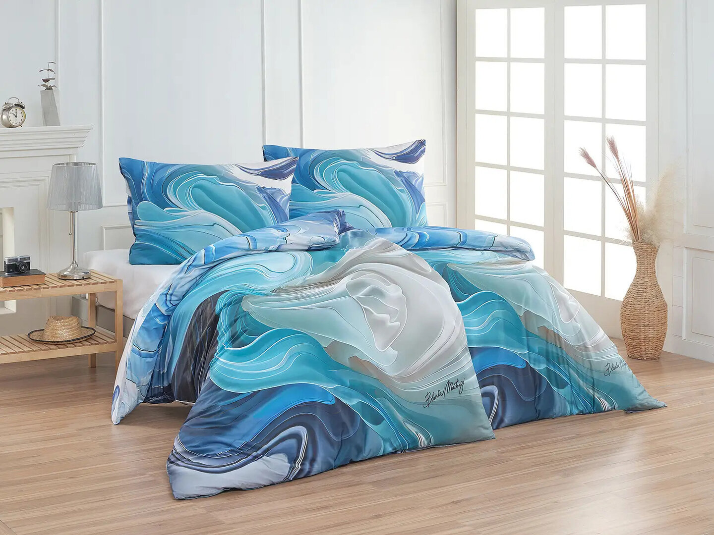 Tento autorský digitálně zpracovaný motiv v sobě snoubí energické odstíny modré s jemnými krémovými tóny. Nejmodernější digitální tisk zajišťuje věrný detail přesně dle autorčina záměru, motiv je z obou stran povlečení stejný.